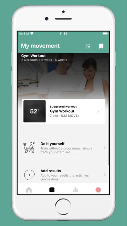 MY MOVEMENT: What you’ve chosen to do: here you will find your programme, classes you’ve booked, chal-lenges you’ve joined and all the other activities you’ve chosen to do at your facility