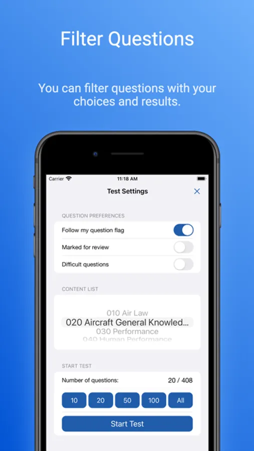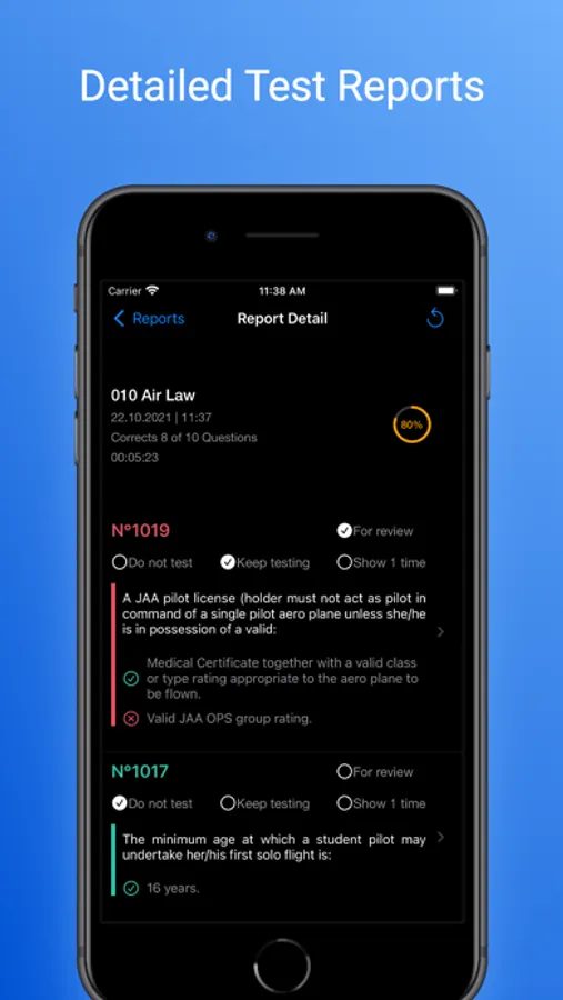 You can see all your results and compare your improvements to prepare the real PPL exam. In addition to study you are able to experience real exam with actual number of questions of related subjects in PPL Exam.
