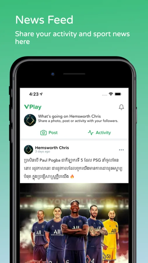 Users can post about their activity and news related to the sport that they like.