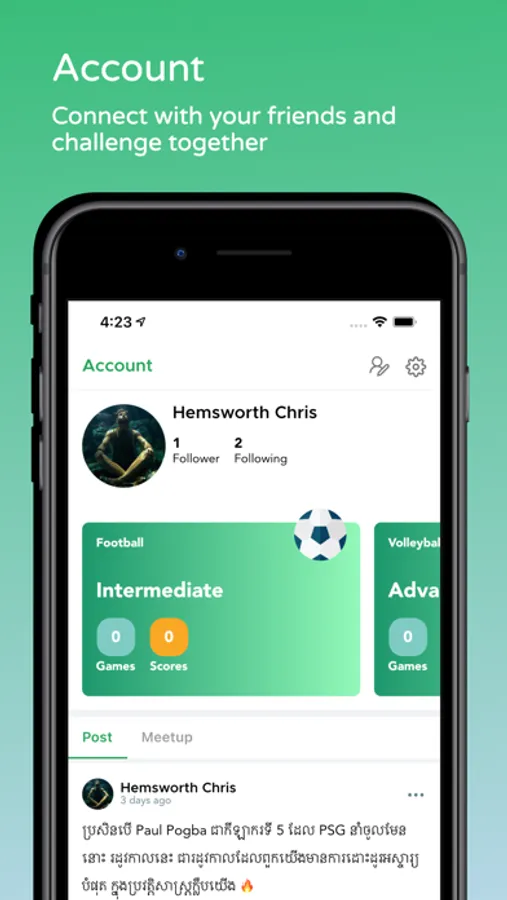 Connect, share and meetup with other over Sports and other related activities.