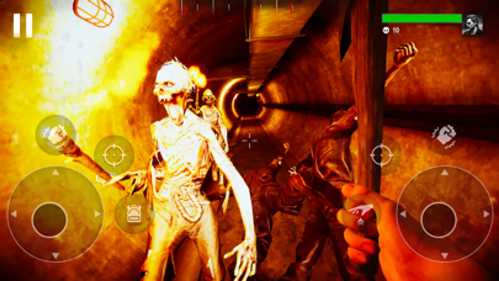 The zombies have already destroyed the bridge, your goal is to get to the other side of the bridge by all means. To do this, you can kill all the zombies in your path or dodge them without killing.