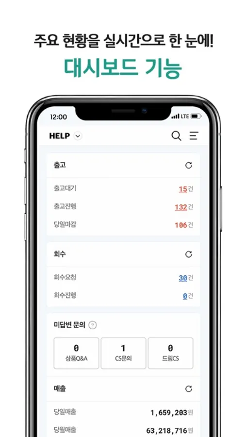 실시간 출고/회수 현황과 문의 현황, 실적 등을 확인할 수 있습니다.