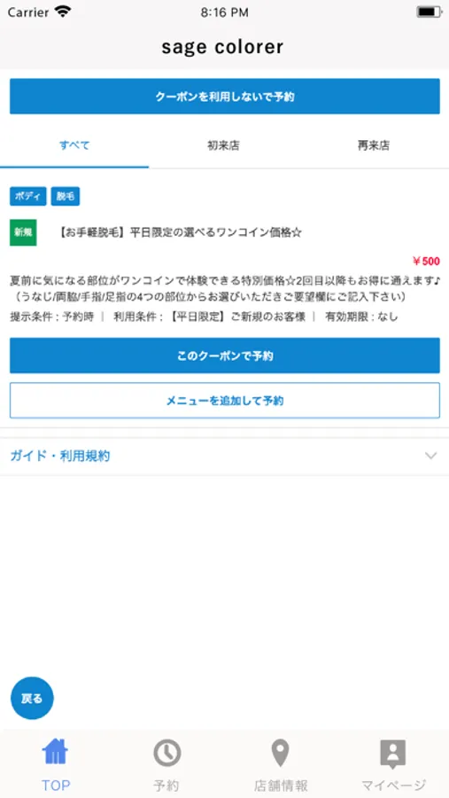 お得なクーポンが配信されます。ネット予約時にクーポン利用での予約も可能なので来店時もスムーズに施術頂けます。