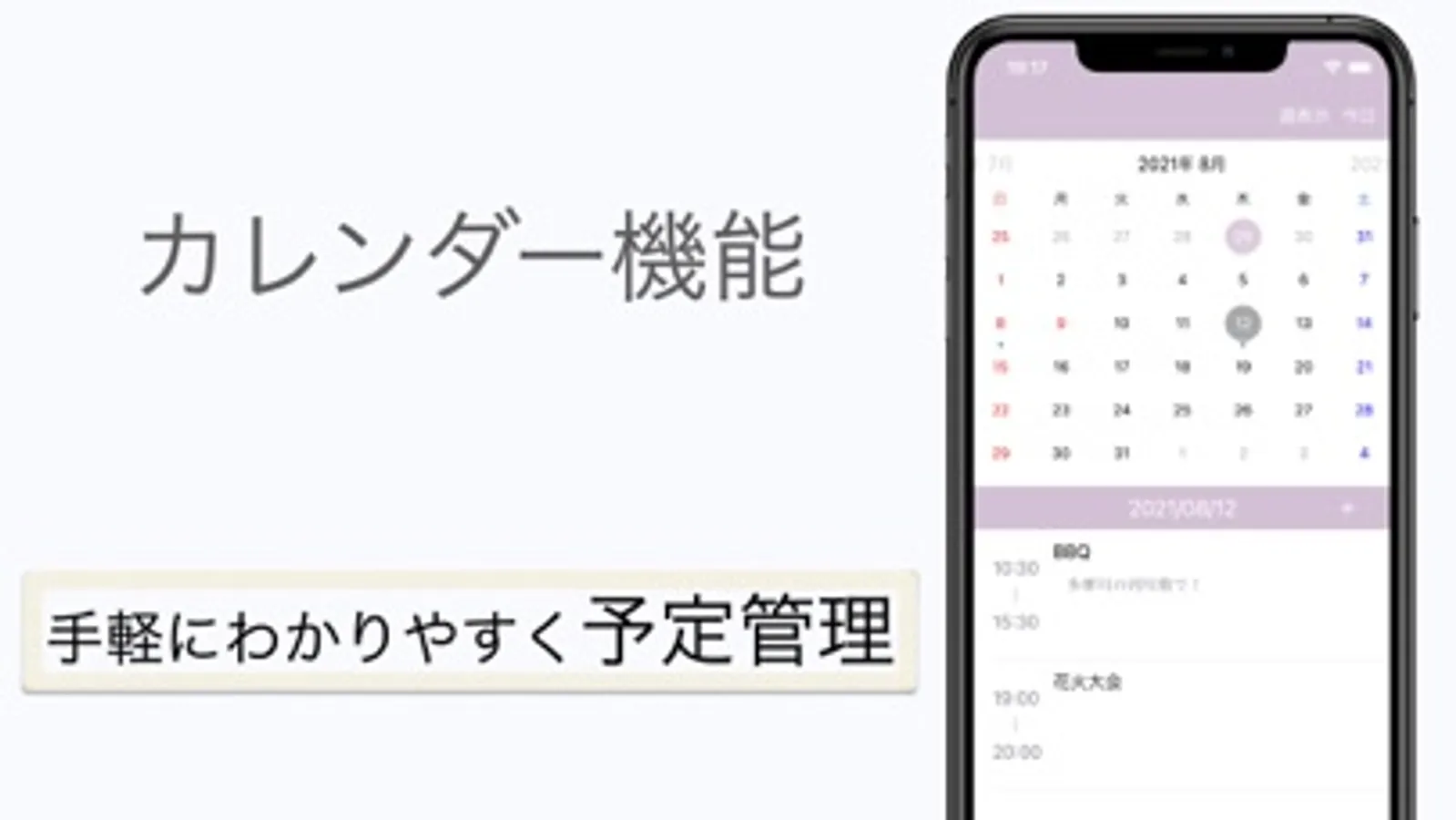 二つ目はカレンダー機能。手軽に分かりやすく直感的な操作でスケジュールの管理が行えます。