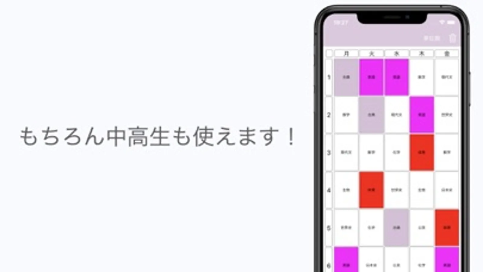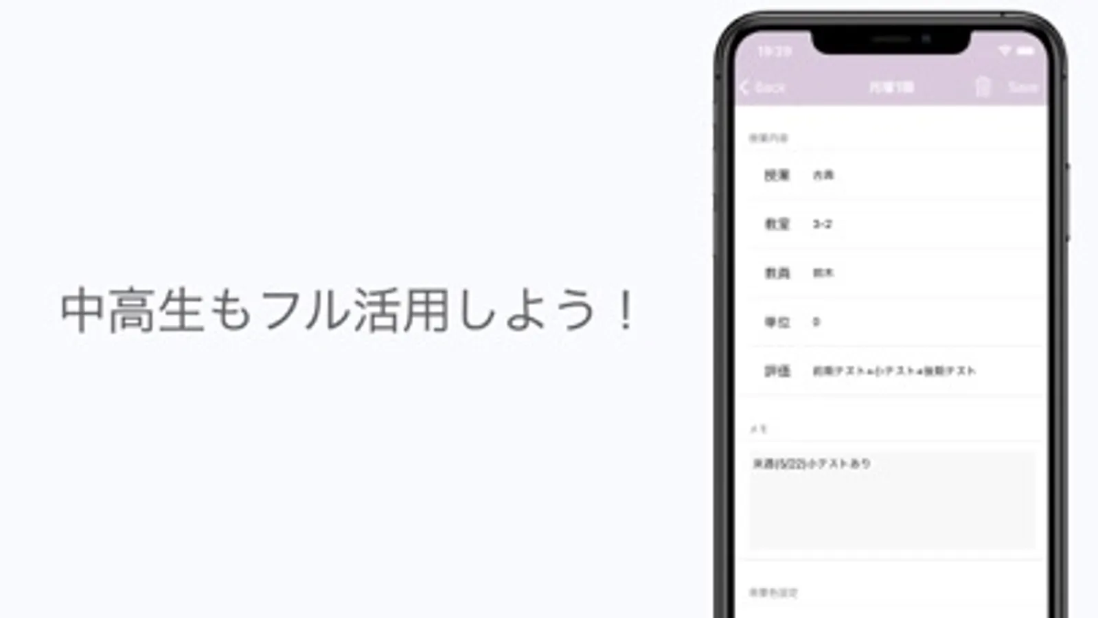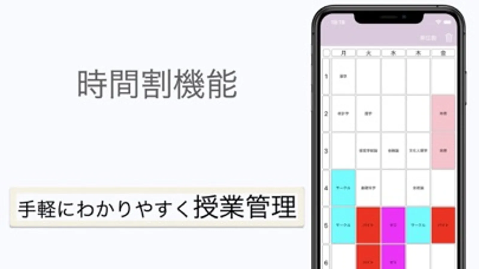 三つ目は時間割機能。時間割ごとに色をつけたり、メモを残したりすることが可能なため授業管理が捗ります。