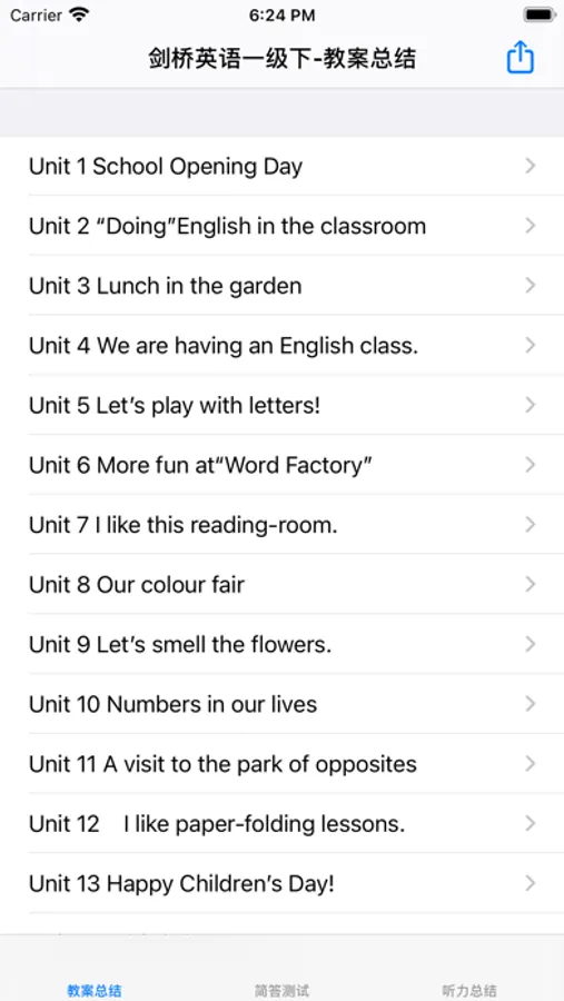本应用全面涵盖剑桥少儿英语一级内容大全:包括教程、语法、听力总结,十分适合相关人士参考学习。