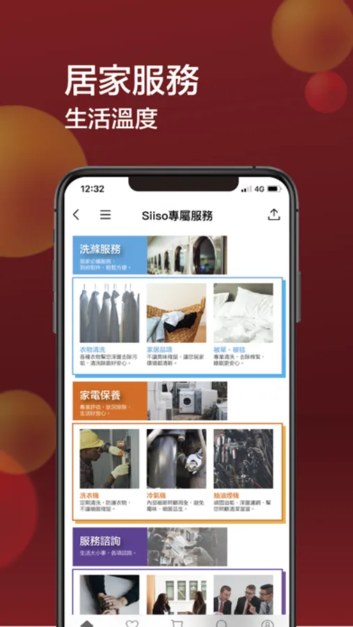 2.[居家服務>生活溫度]攜手一起過生活,提供生活眾多便利服務:洗滌服務、寵物專區、家電保養、