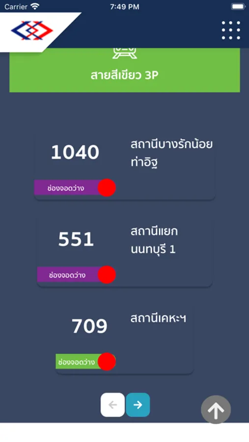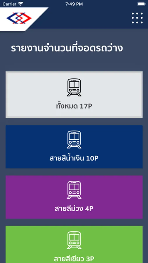 - ตรวจสอบจำนวนที่จอดรถว่างในแต่ละอาคาร/ลานจอดรถ ของ รฟม.