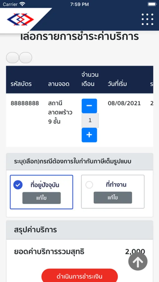 - ต่ออายุบริการจอดรถรายเดือน (สำหรับผู้ใช้บริการรายเดิม)