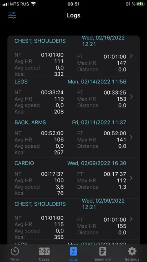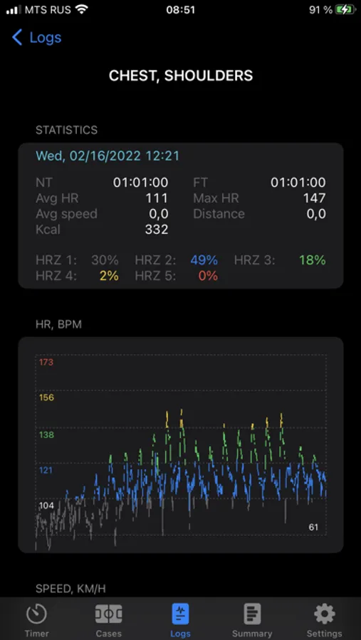 - statistics (time, calorie consumption, heart rate graph, heart rate zones, speed, distance)