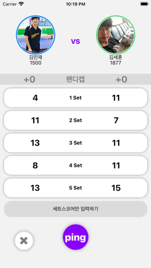 3. 탁구 시합을 한 뒤 핑앤퐁 앱에서 시합결과를 친구에게 보낸다 (ping)