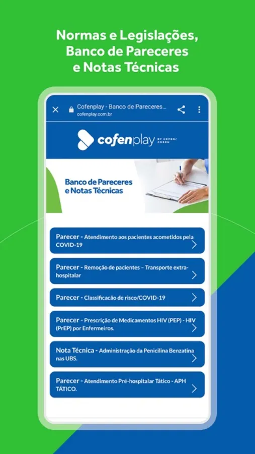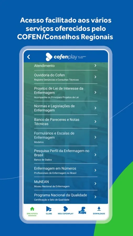 Você também tem acesso aos vários serviços oferecidos pelo COFEN/ Conselhos Regionais: