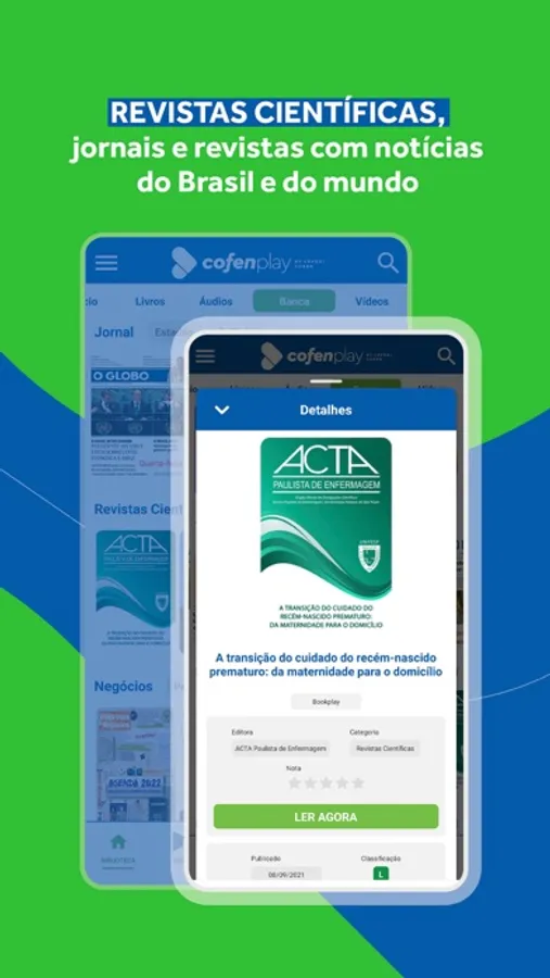 O Sistema COFEN/ Conselhos Regionais de Enfermagem apresenta a plataforma que vai revolucionar a carreira dos profissionais de enfermagem. São centenas de LIVROS na área da enfermagem e saúde, JORNAIS e REVISTAS de notícias, AUDIOLIVROS, PODCASTS, VÍDEOS, DOCUMENTÁRIOS, SÉRIES e REVISTAS CIENTÍFICAS.