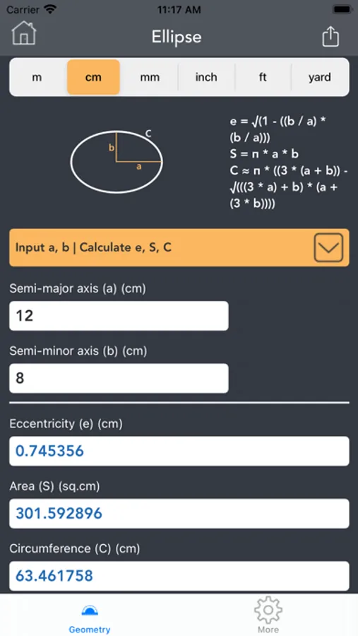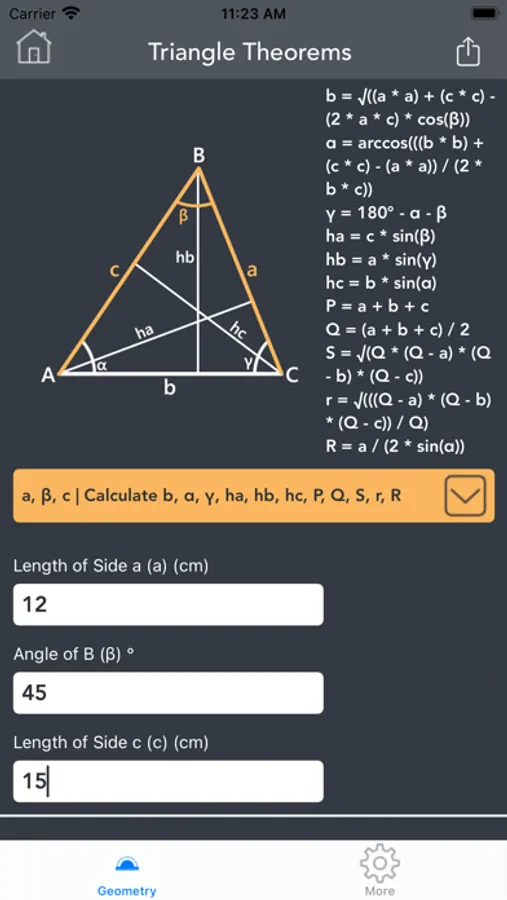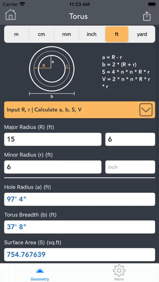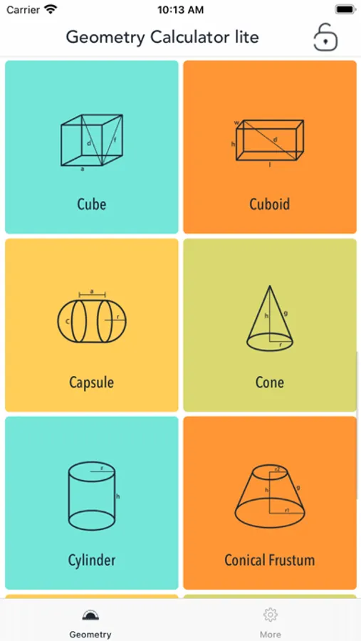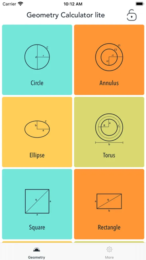 Geometry Calculator lite contains 26 shapes, planes and solids and 783 calculations for