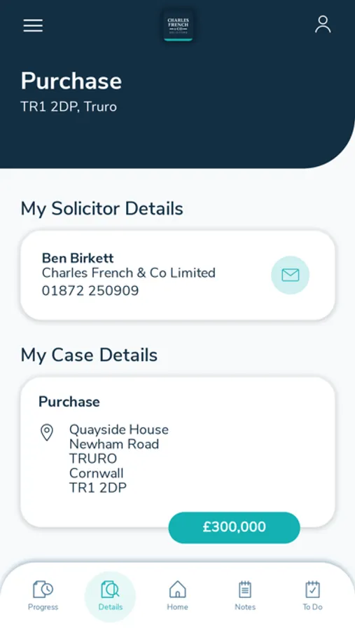 With any legal service, you’ll want visibility over the matter without having to pick up the phone! In a world of mobile devices, we now expect the ability to review progress at a time that is convenient to us. This app has been designed with features that keep you updated by providing live matter information. Whether you simply want to check the quote or if you wish to keep track of progress, this is the app for you. You’ll be able to clearly see each step in the legal matter so you understand the process.