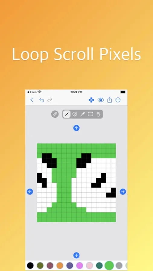 • Basic Tools: pencil tool, block tool, color bucket tool, selection tool, eyedropper tool, scroll tool.