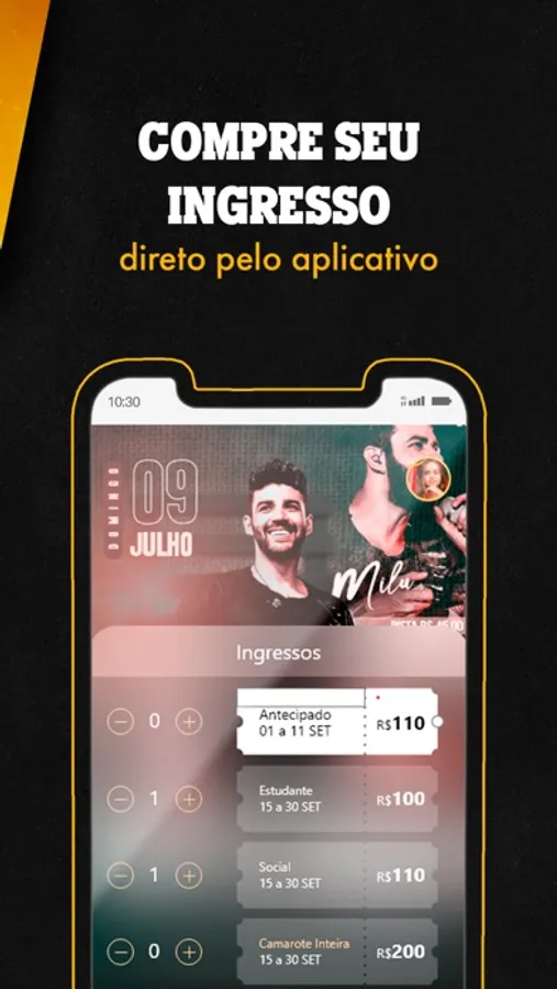 E em nosso aplicativo, você pode conferir toda a nossa programação de shows e eventos, além de comprar o seu ingresso com antecedência de forma totalmente online. Você também pode fazer a sua reserva e comprar os seus combos de bebida diretamente pelo nosso sistema, para aproveitar o momento da festa sem precisar se preocupar!