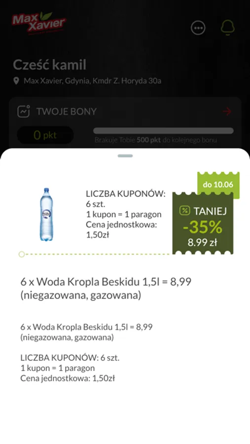 Zeskanuj kartę Max Xavier przy kasie i korzystaj ze zniżek na wybrane produkty.