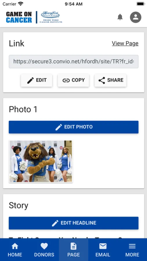 * Update your fundraising page with your story and/or a photo using a photo stored on your device