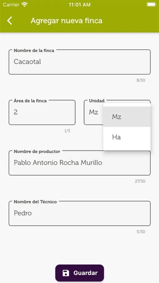 Una aplicación que facilita toma de datos sobre estado de plantas de cacao, análisis de datos y toma de decisión sobre manejo de plagas y cosecha de Cacao.