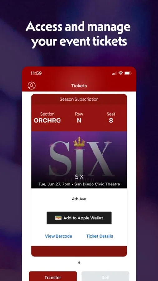 With the redesigned Broadway San Diego App, accessing your tickets, exclusive content, and real-time alerts has never been easier. Purchase single, group, or season tickets directly through the app and be the first to know about presale and on-sale tickets. Enjoy exclusive offers and easily manage your tickets all in one convenient place.