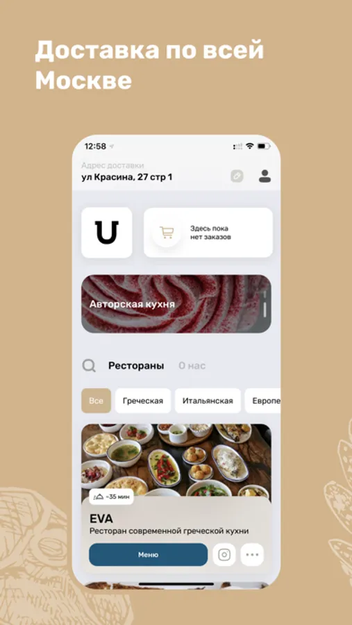 В приложении вы можете заказать доставку или самовывоз из ресторанов Lucky Group.