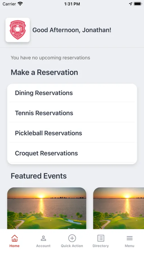 - Make dining, tennis, pickleball and croquet court reservations