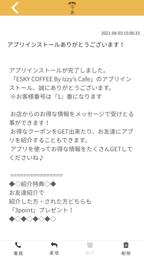 ESKY COFFEEのアプリをSNSを通じてお友達に紹介する事ができます。