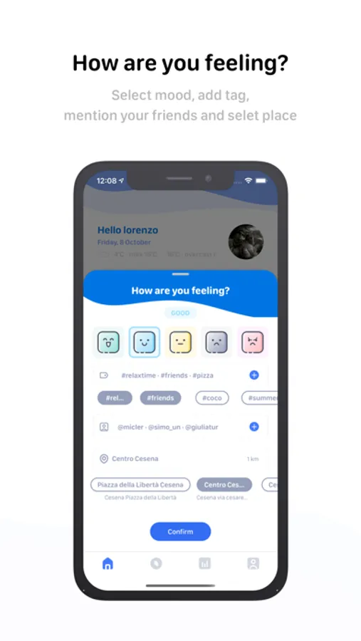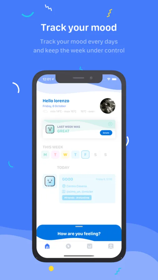 - Set daily alerts according to your habits to remind you when to monitor your mood