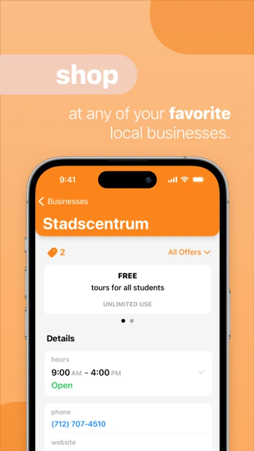 Shopping local has gotten easier when you use the retail page, featuring great businesses around town. Get access to business information like store hours, locations, and offers. Students can get even more access to great deals!