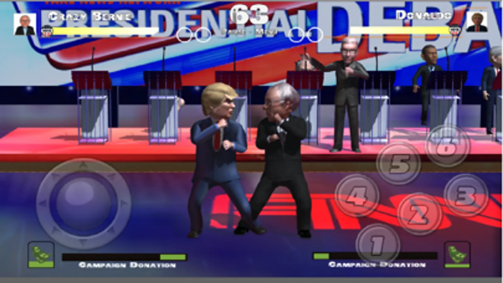 "Fight as a political candidate to determine the presidential election! The year is 2020 in an alternate universe where elections are decided by brutal bouts to the death. Who will win at debate night? Featuring Killary, China Joe and Donaldo with more DLC characters coming soon"