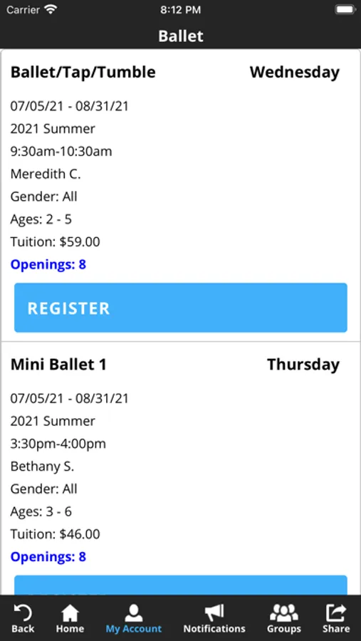 The Dance Network app allows you to manage your account with ease, register for classes, parties, and special events. You'll also receive important notification about class changes, closings, registration openings, special announcements, and upcoming events.