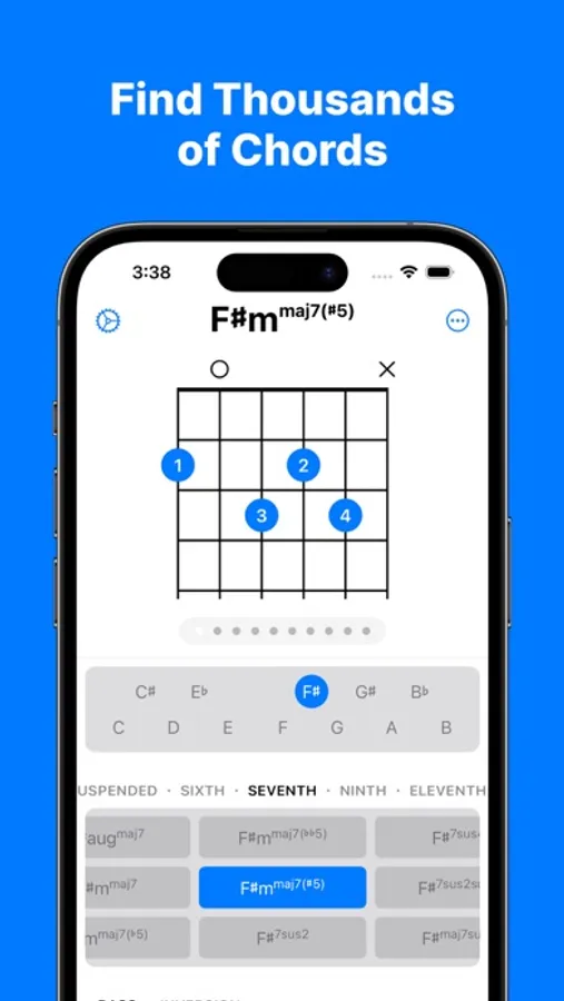 – Quickly find thousands of chords from C to F#maj7(#5)