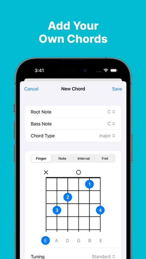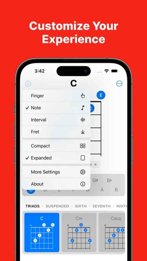 – Learn the music theory behind chords by seeing notes and intervals for each chord position