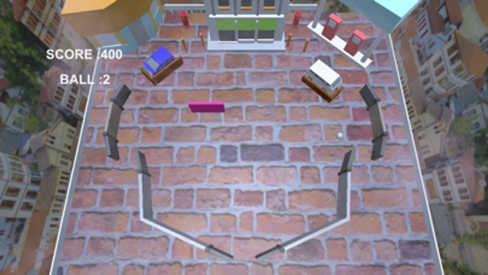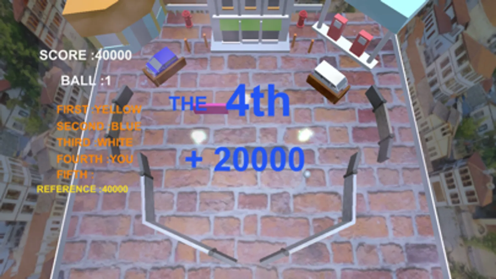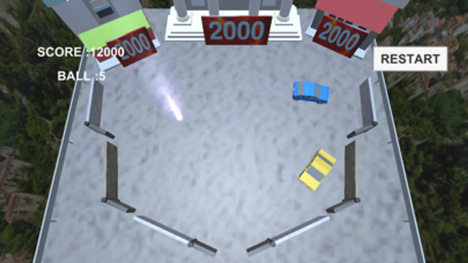 2. Hit a car to the color board in order to turn into the scoring mode that the ball switches to the car (and has a point of view)