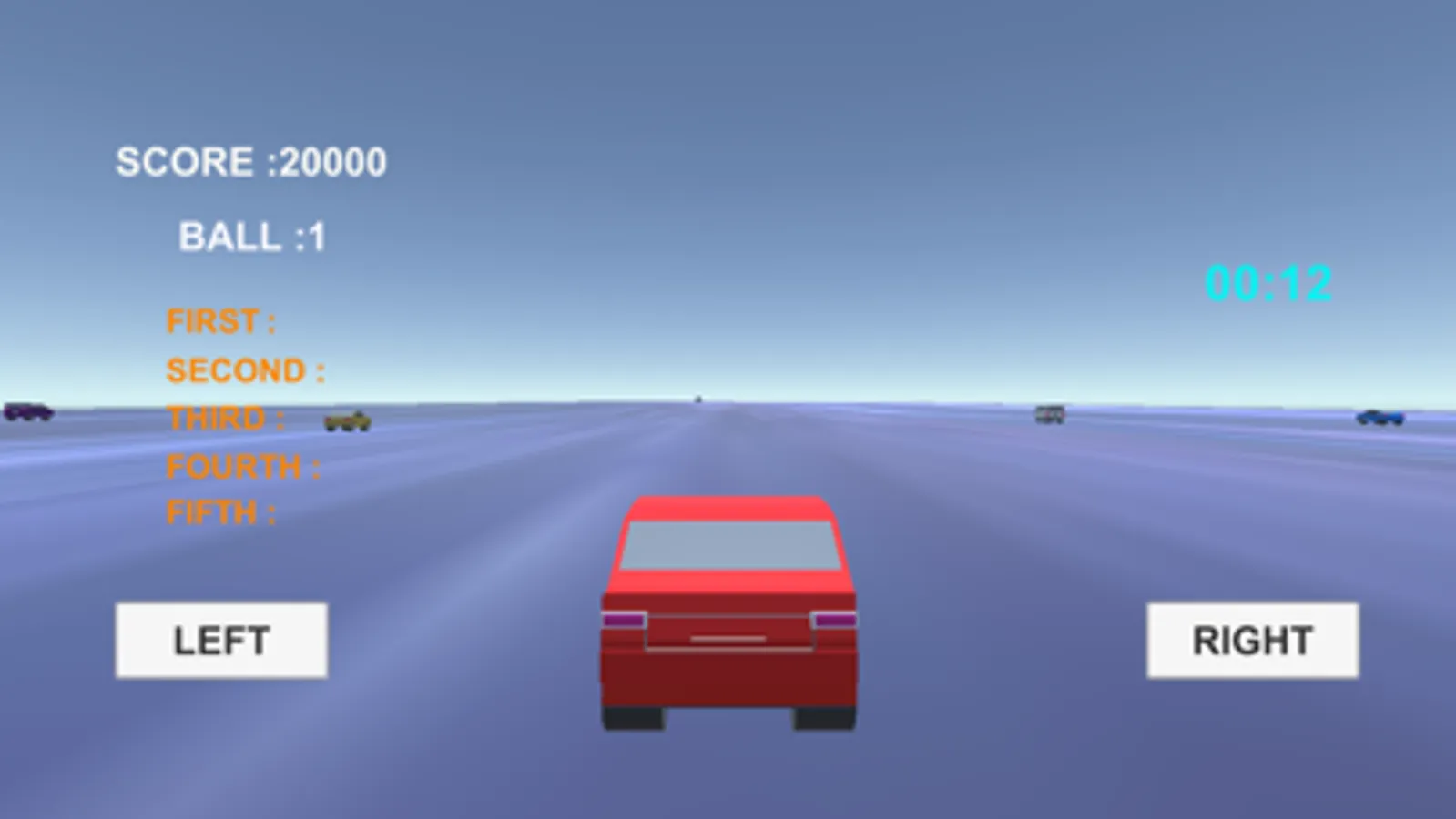 If your car deviates from the race course or goes over one minute in the race, the game is over at once.
