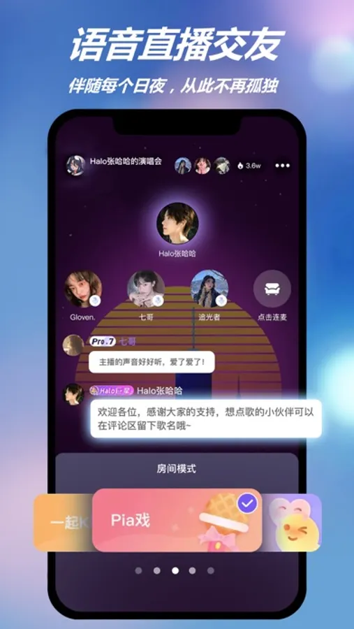 「语音直播」:扩列交友、相亲、歌曲点唱、剧场Pia戏