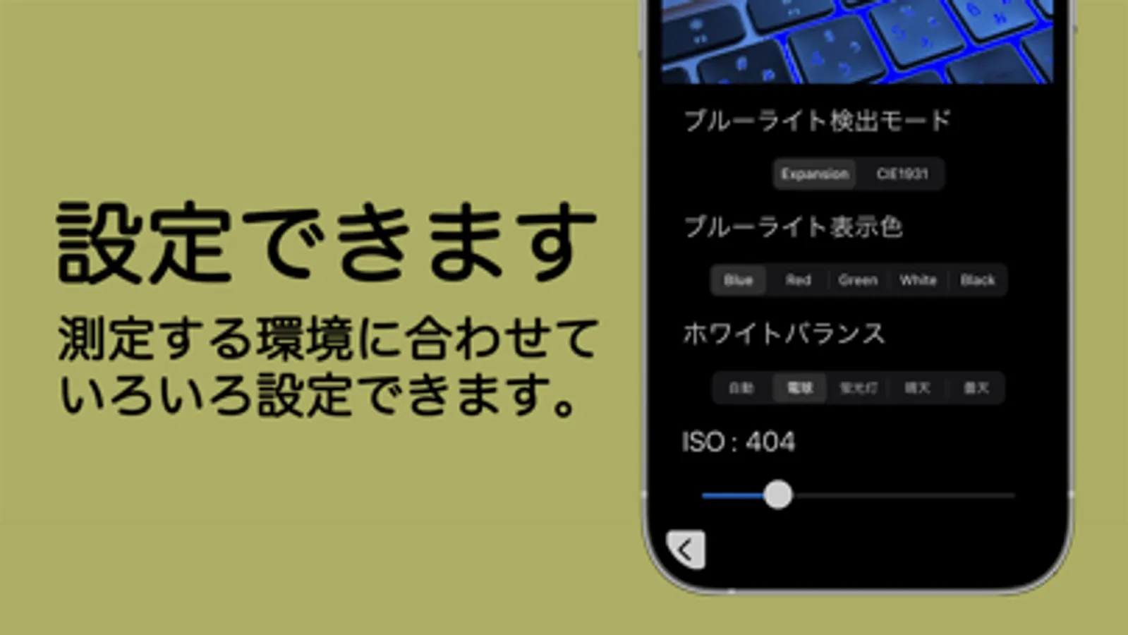 ※本アプリは、CIE(国際際照明委員会)で制定されている「CIE測色標準観察者等色関数」を元にブルーライト波長に対応した色を計測しております。