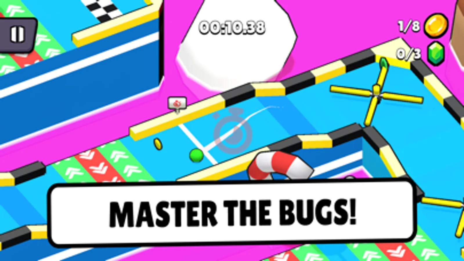 In Bug-A-Ball you’re rollin’ through different worlds and levels and you’ll collect plenty of gold and diamonds. Unlock exclusive skins and personalize your ball to show anyone who has the best ball. But… watch out! Dangerous bugs can change your game completely.