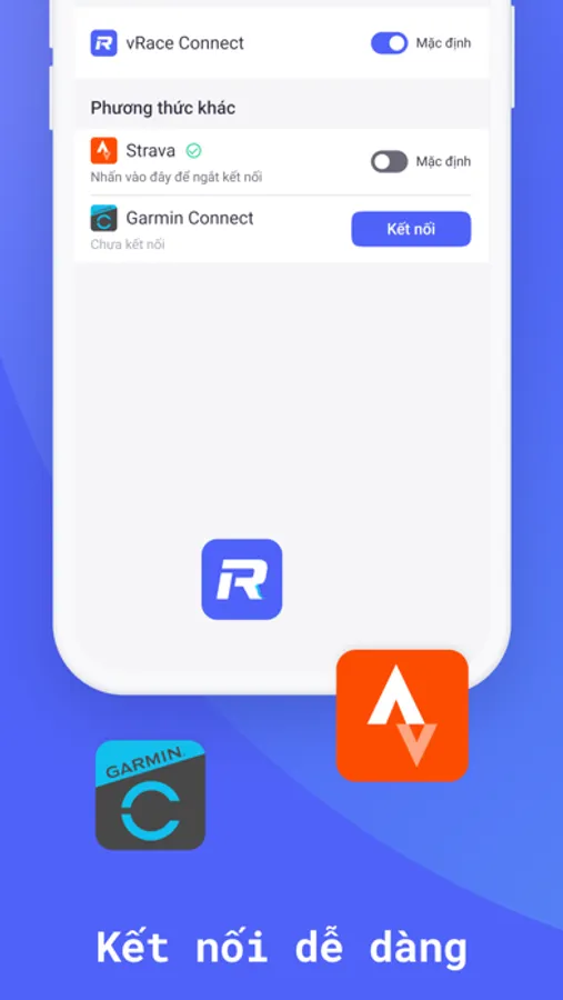 • Đa dạng kết nối: vRace Connect, Strava, Garmin...