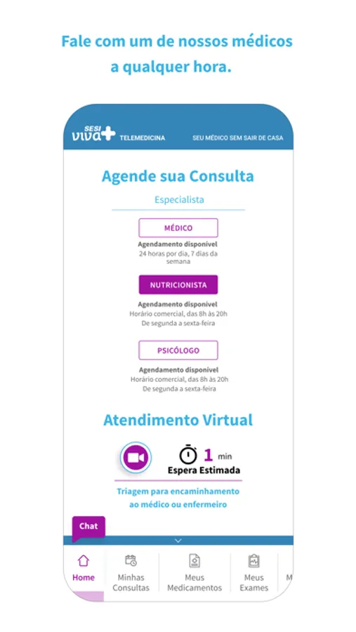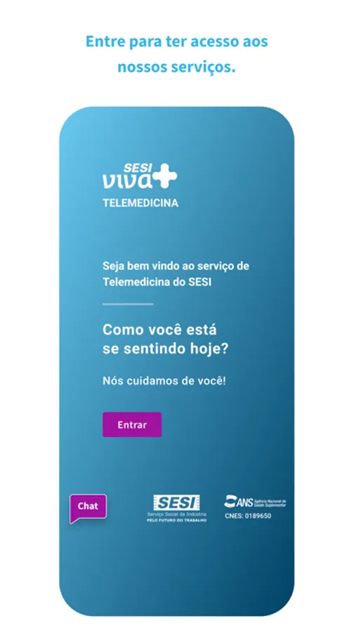 BEM-VINDO AO SESI TELEMEDICINA Aplicativo destinado aos beneficiários do Programa SESI VIVA MAIS TELEMEDICINA empresas-clientes, no qual é possível fazer consultas imediatas e / ou agendadas com o clínico e outras especialidades médicas, bem como salvar o histórico clínico do Beneficiário / paciente. Tudo online e integrado.