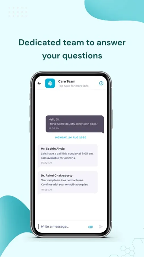 From that point forward, your dedicated health team will get in touch with you, and provide personalised recovery plan, post that you can log your activity for your physician visits, learn more about your condition, communicate directly with your dedicated health team & your treating doctor!