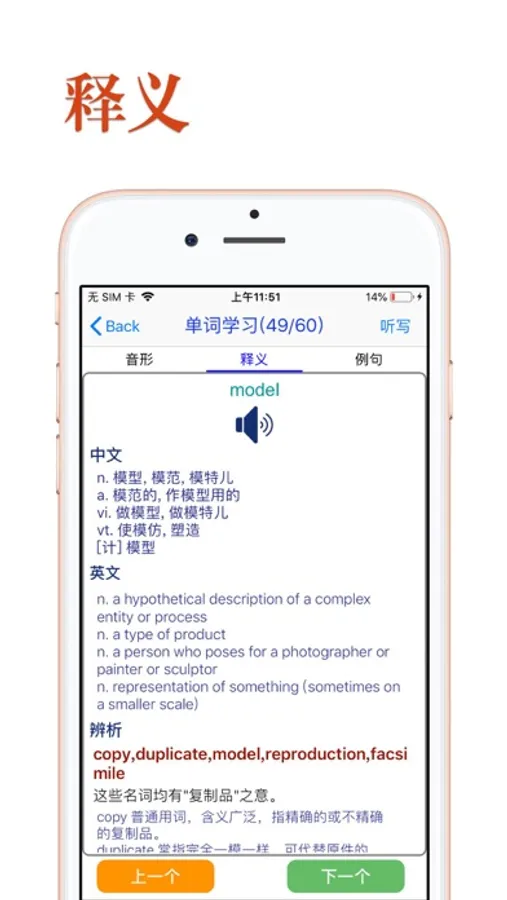 有形入意, 双语解释, 排除易淆词干扰, 以英语解释英语, 然后通过场景例句进一步在加强词汇识记和使用。