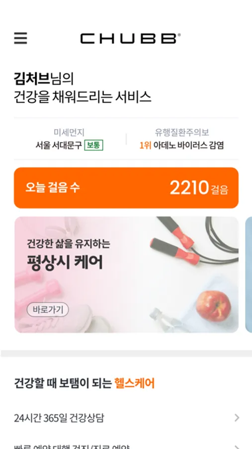 _ 본 앱은 처브라이프 보험 가입 고객을 대상으로 하는 건강관리서비스 입니다.