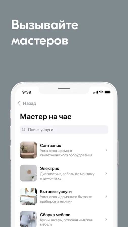 Вызывать мастера, следить за статусом заявки, общаться в чате и оценивать качество работы;