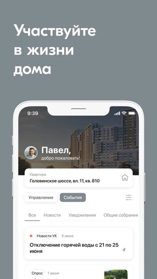 Отправлять заявки, оплачивать счета, принимать участие в опросах и общих собраниях, получать важные уведомления — теперь удобней.