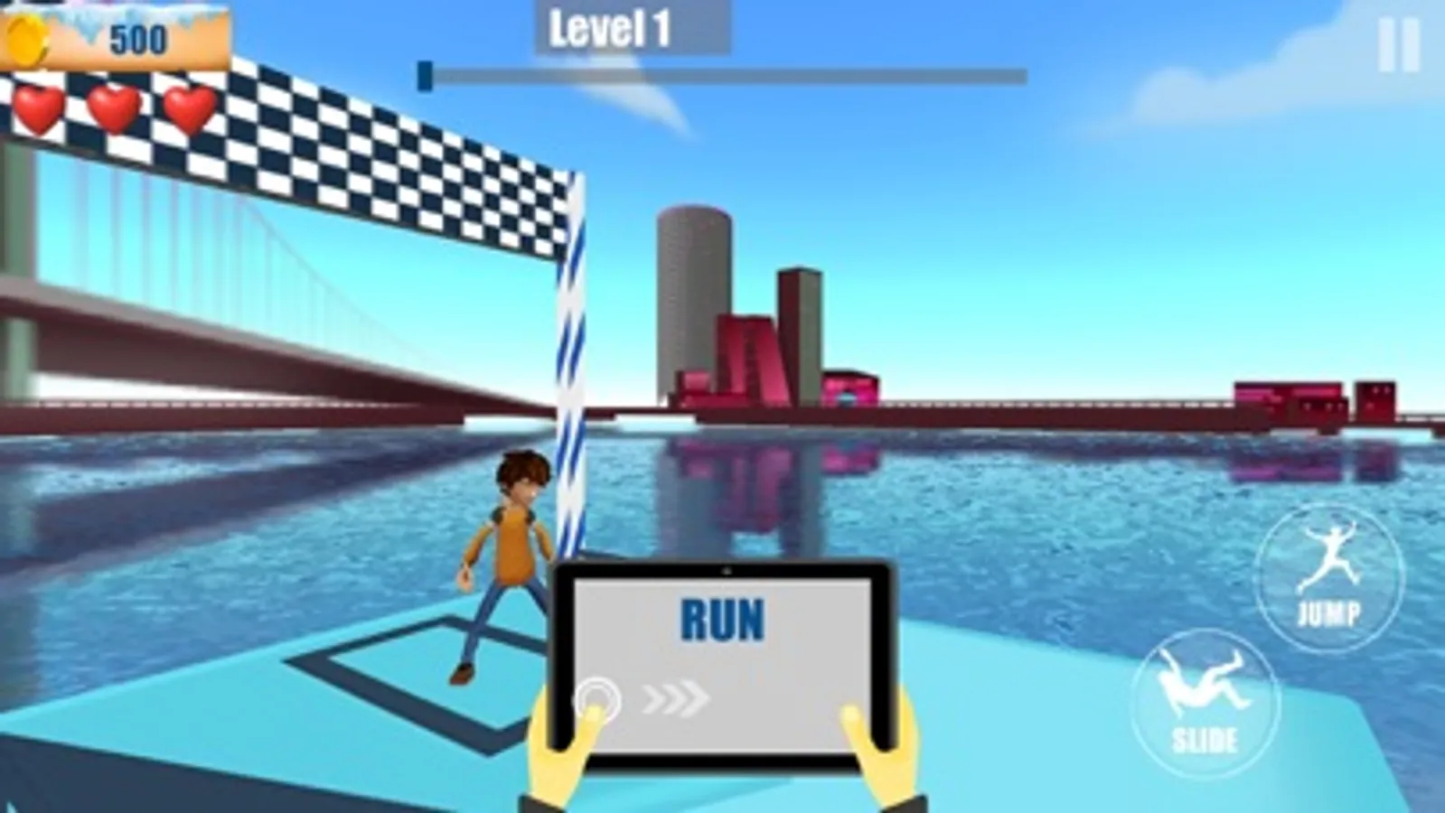 • Jump: - cross the gaps in platforms and stacked hurdles with jump button
