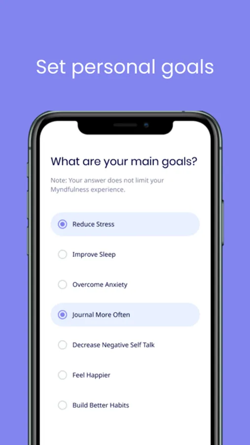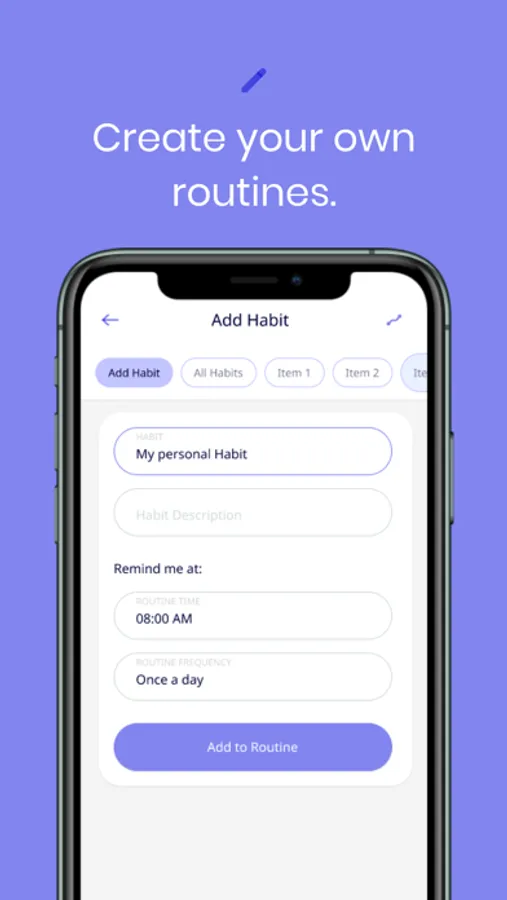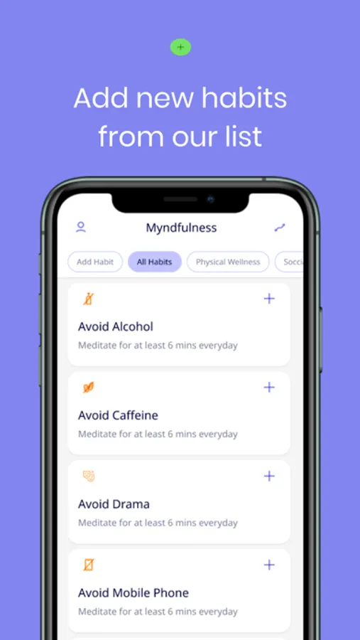 Myndfulness helps users to build better habits that promote self care. Your habits play a major role in your mental wellbeing, so we make it easier to stay accountable to building healthy habits and routines through our unique habit reminder system. You can choose from our ever-growing library of self-care habits and create custom habits to match your life goals.