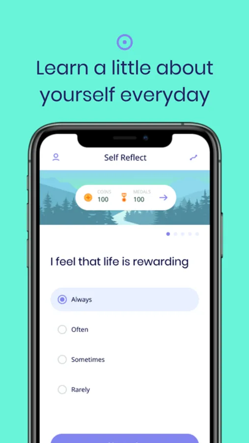 Based on cognitive behavioral therapy concepts, our self reflection questions are designed to help you reflect and bring awareness to what makes you feel positive or negative. Our self reflection surveys are updated frequently so that you can consistently learn about yourself. Self-reflection empowers you to take responsibility for your actions and opens up vivid life paths to choose.