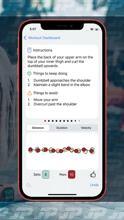 Just Progress leverages HealthKit's sensors to detect your motion. The interactive and real-time interface draws a RED DOT for each rep you perform. Challenge yourself to keep the dots consistent and perfect your form! You can also toggle BLUE and GOLD DOTS to compare against previous and best sets.